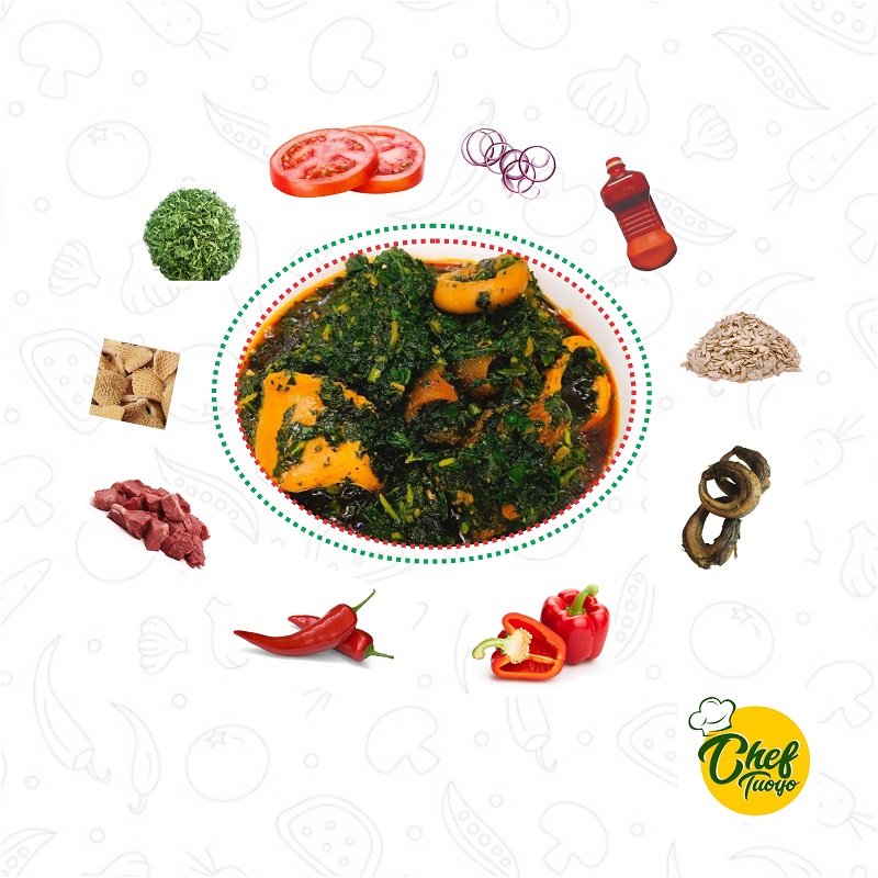 Eforiro soup is a flavourful and popular Nigerian dish, hailing from the Yoruba ethnic group. It is known for its vibrant green appearance and rich taste. The main ingredients in Eforiro soup typically include fluted pumpkin leaves (ugu), a variety of meat or seafood (such as beef, chicken, or fish), and ground crayfish.